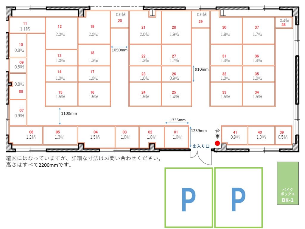 ※リンク先の「サイズ・料金一覧」は、スペースの満空状況を示しており、満室の場合「お問い合せ」ボタンが表示されています。
