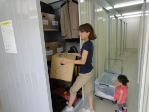 サイズはお客様の用途に合わせてお選びいただけます。0.5帖ロッカータイプは押入れ半舷分程度で、みかん箱が6~8箱くらい入るサイズです。自動換気を行っており、全室収納棚が付属しているのでクローゼットや押入れ感覚で、お洋服、季節家電、レジャー用品等の保管に最適です。