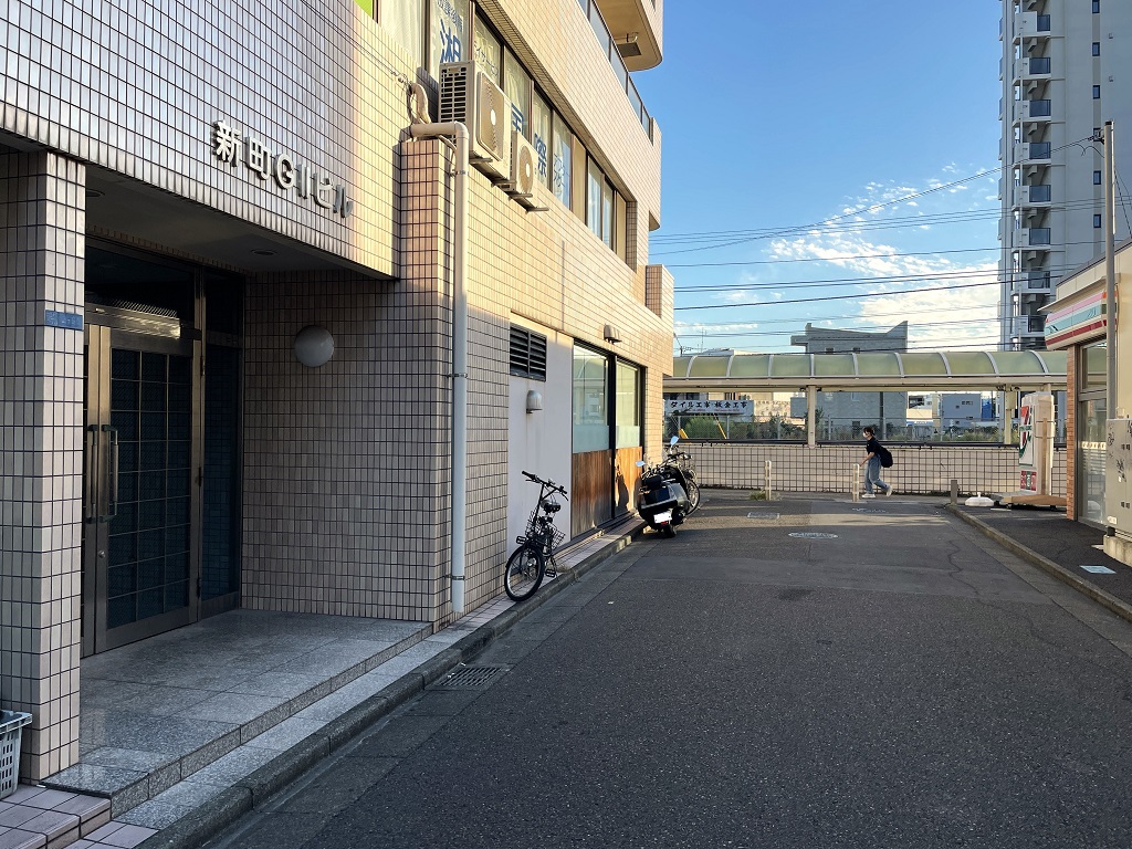 藤沢エリア・JR辻堂駅徒歩5分、れんげ食堂 Toshu 辻堂店様が1階にある新町GⅡビルの2階、全24室の室内型トランクルーム施設です。